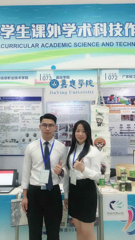 (广东省第十五届“挑战杯”终审决赛问辩现场两位负责人的合照)