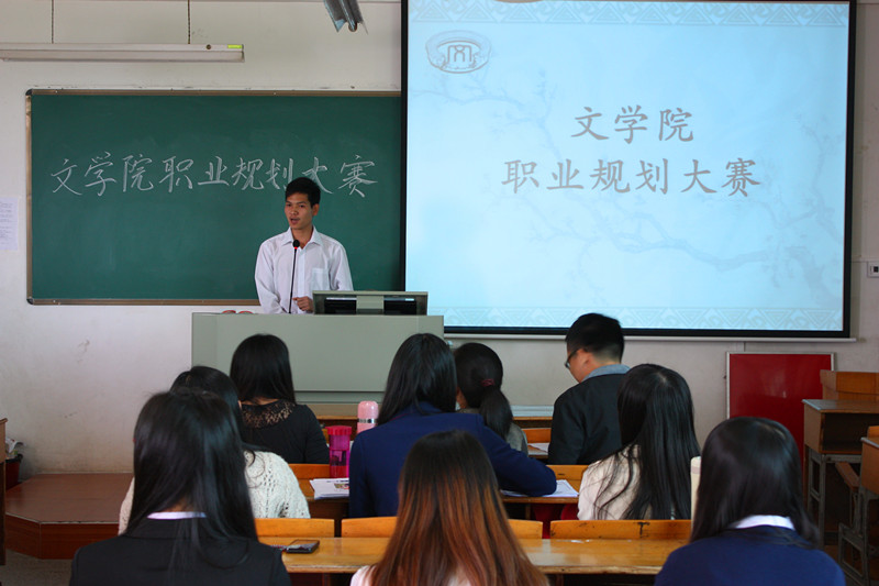 为帮助学生更好的认知自我,明确未来职业发展方向和实施路径。11月19日下午,文学院大学生职业规划大赛在田师605举行。大赛由文学院党总支书记李保民统筹规划,并进行思想指导,院辅导员担任评委。