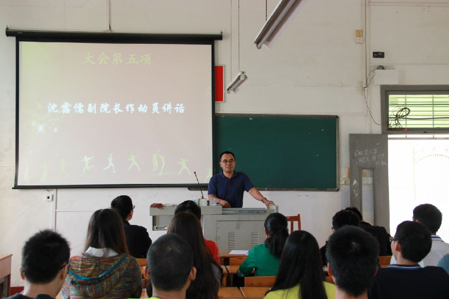 为迎接即将到来的校运动会,文学院于2015年11月3日下午在田师601举行了第十二届校田径运动会动员大会,沈露儒副院长、辅导员老师以及教练员、运动员、后勤保障人员参加了本次动员大会,大会由学工办主任刁清利老师主持。
