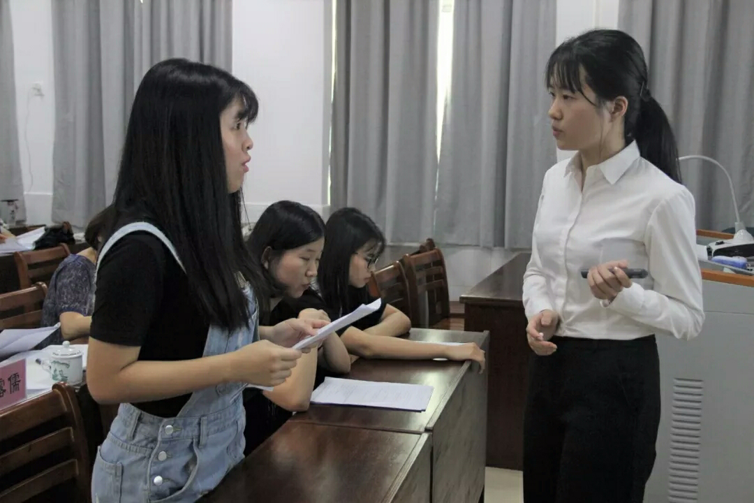 为提高学院师范生从教应用实践水平及技能,迎接“第六届广东省师范技能大赛”,文学院于7月4日下午在文科楼220举办了第六届广东省师范技能大赛学院选拔赛。文学院副院长沈露儒,副院长陈红旗和老师朱银锦、古晓君共同担任此次比赛的评委。