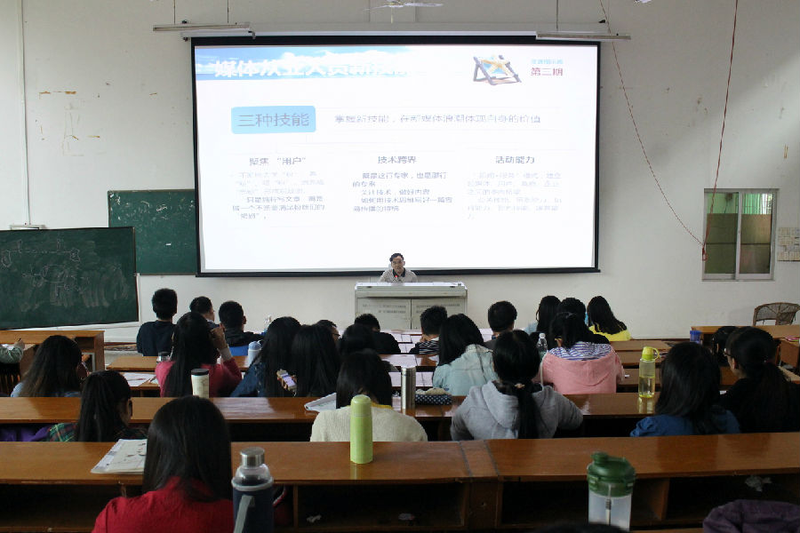 11月5日下午,梅州日报副总编辑、主任记者、我校文学院兼职教师黄山松在田师100为新闻学专业学生作题为《媒体从业者现状及应对技能》的讲座,文学院副院长沈露儒担任主持。黄山松通过一系列调查数据分析了媒体从业者的生态现状,介绍了有关媒体从业者所应具备的良好素质,并结合自身经历向学生讲解从业趣事及从业所需技能。此次讲座内容饱满、联系实际,既丰富了学生的专业知识,也为学生专业技能的培养指明了方向。 撰稿人:阮子桓 审稿人:沈露儒