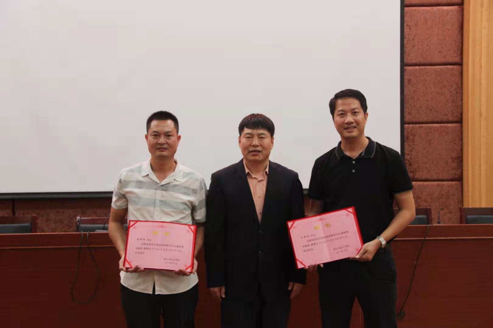最后,学院领导进行了简单而隆重的授聘书仪式,特聘请叶宇斌和柯泽华两位老师担任我院教师教育专业兼职指导老师。