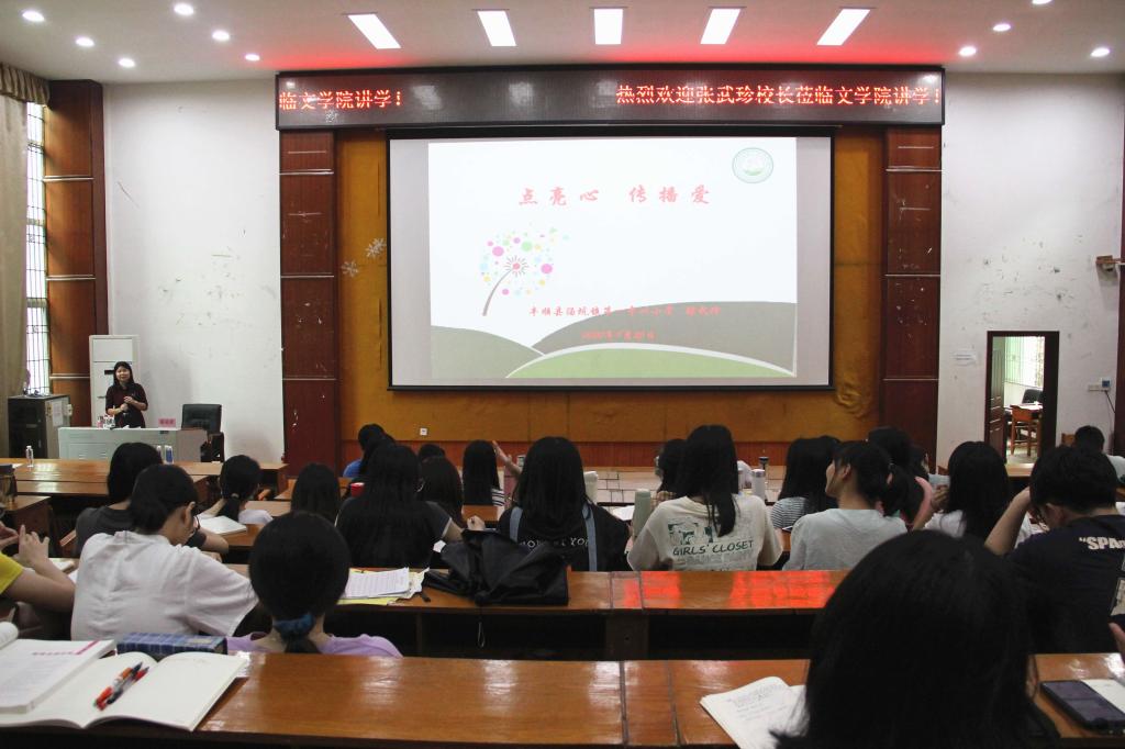 为加深文学院大四学子对师德的理解,9月25日下午,全国模范教师、梅州市丰顺县汤坑镇第一中心小学张武珍校长应邀在田师100学术报告厅开展了以“班主任的师德涵养”为主题的讲座。本次讲座是“做一个有智慧的班主任——‘班级管理’系列讲座”的第三讲,讲座由陈红旗院长主持,文学院200多位学子认真聆听了本次讲座。