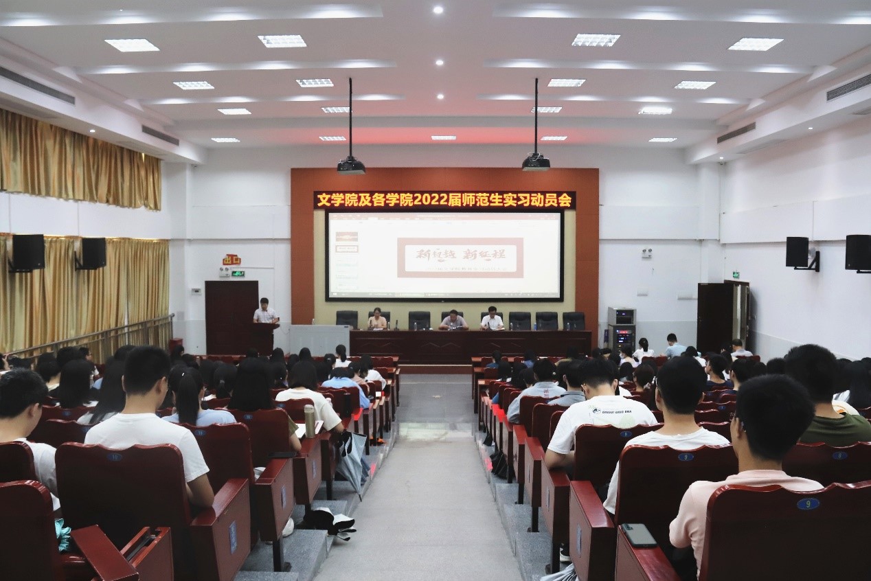 为推进教育实习工作的顺利开展,我院于10月9日上午在百年纪念大楼107学术报告厅召开2022届师范生实习动员大会。文学院党委书记曾桓辉、院长陈红旗、党委副书记杨赐文、副院长石朝辉、教学法指导教师刘义民老师、辅导员黄国艺老师、刘晓丹老师、以及200多名2022届毕业生出席此次大会,大会由石朝辉副院长主持。