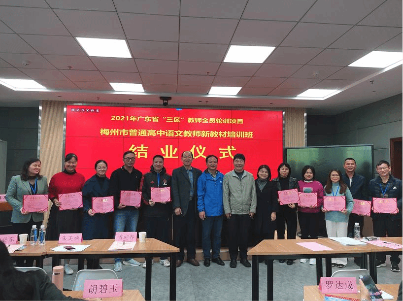 最后,相关领导为10名优秀学员颁发证书。至此,为期12天的“梅州市普通高中语文教师新教材培训班”线上培训落下帷幕,线上学习即将开始。