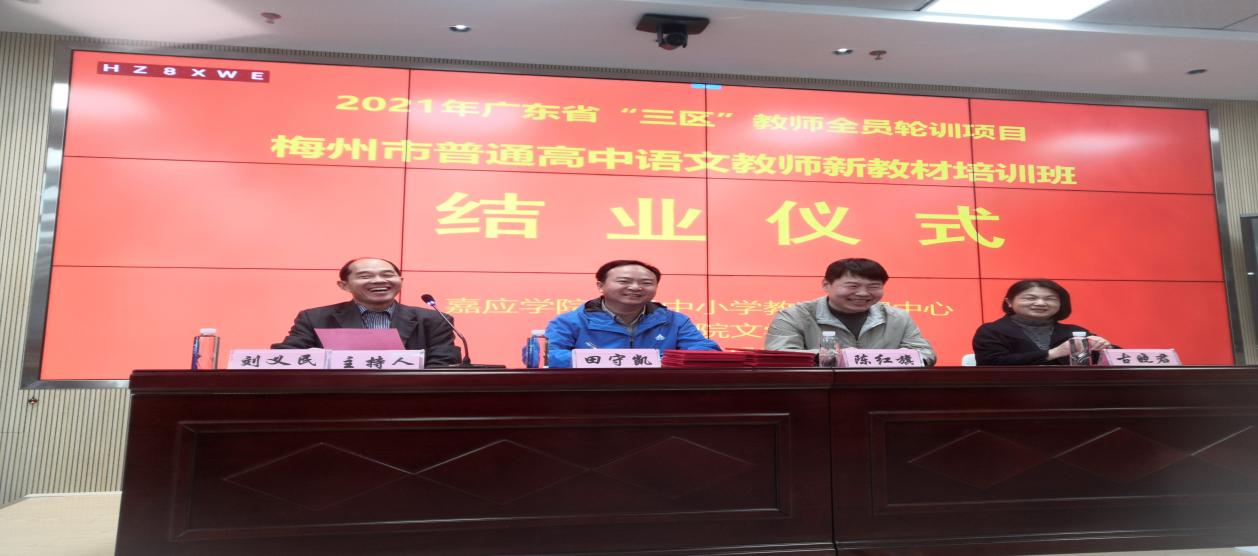 11月26日上午,2021年广东省“三区”教师全员轮训项目——梅州市普通高中语文教师新教材培训班结业仪式在嘉应学校继续教育学院举行。文学院、教师教育发展中心相关领导、教学班主任、生活班主任和相关工作人员,以及57位学员参加了结业仪式。