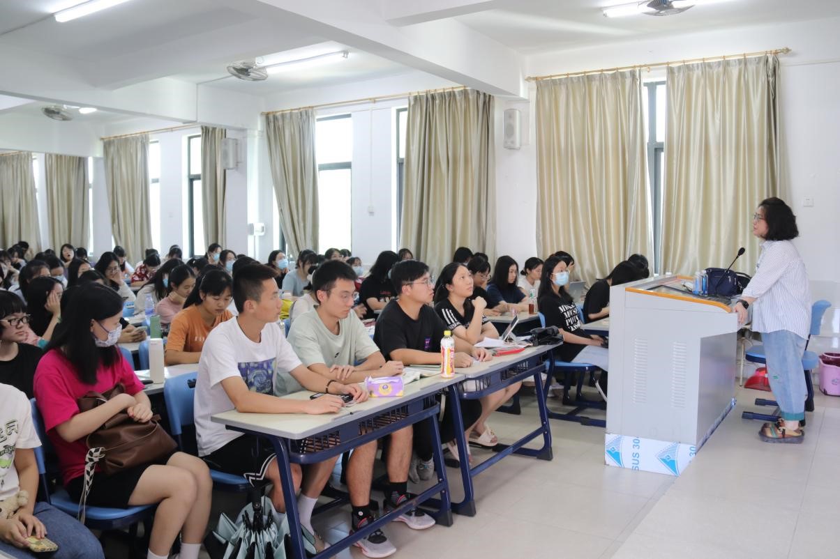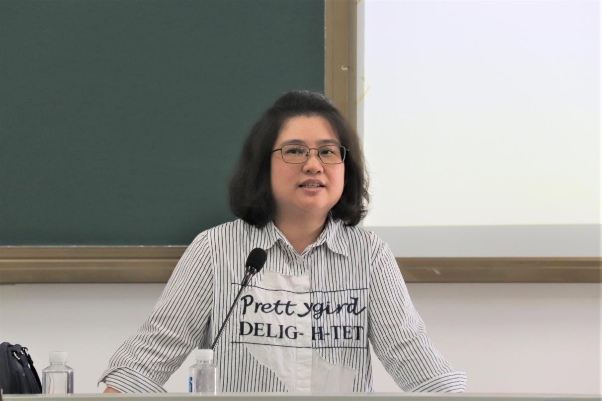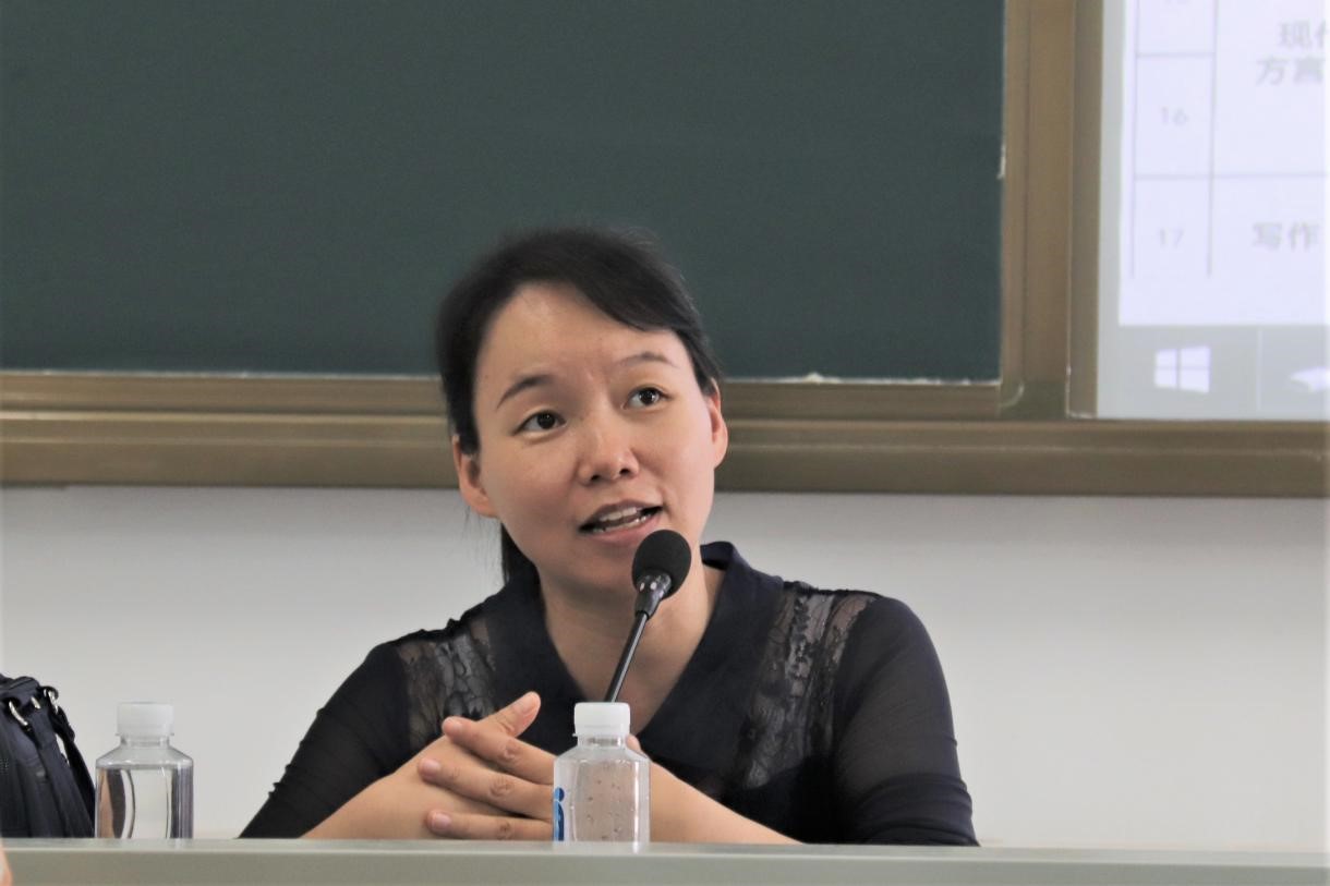 接下来黄婷婷老师从语言学角度给同学们提供了写作建议。首先,黄老师从语料入手,强调语料与语言要素密切相关。然后,提议大家进行学科交叉,例如将教法与语言学结合,可以使选题更新鲜,并且大家在接下来的实习中可以结合选题进行实践,得出成果。再者,她提及可操作性的问题——语料如何获取,最简便的方式就是文本。最后,黄老师建议同学们,一开始不要过分追求创新,创新很多时候是无心插柳柳成荫的事情,是自己努力过后自然而然得到的成果。