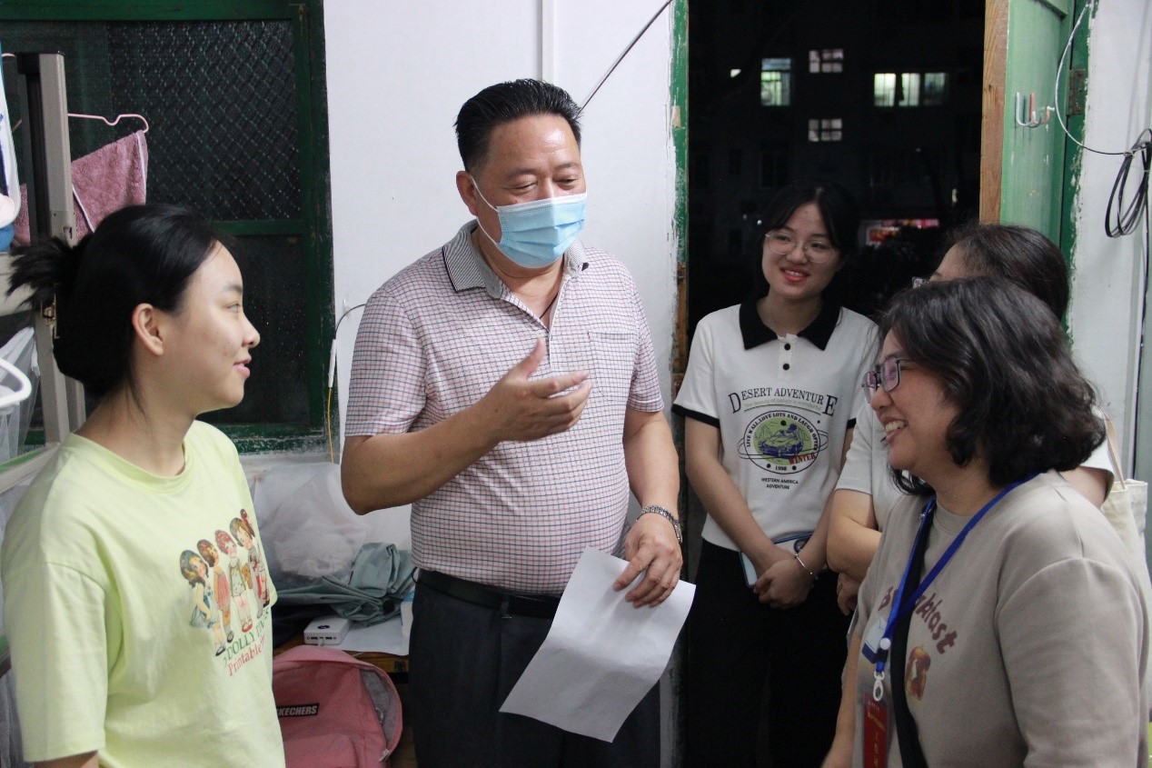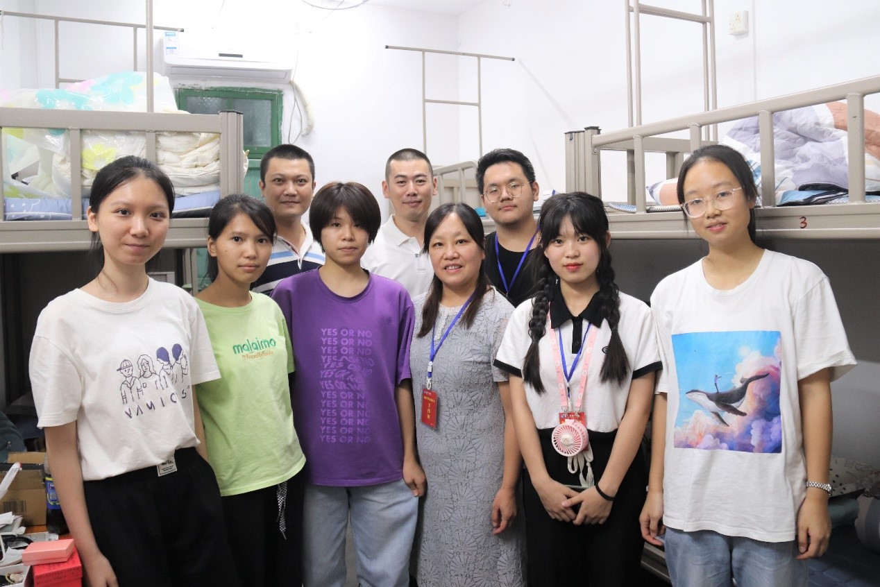 为进一步了解2022级新生的学习生活需求,帮助新生尽快适应大学生活,9月12日晚上,文学院党委书记曾桓辉、党委副书记李锐、副院长侯小英和副院长石朝辉分别带领辅导员、各班班主任以及班助一同前往江南校区2022级新生的学生宿舍,为他们送去学院的关心和温暖。