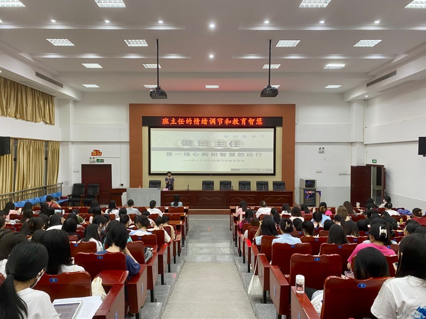 9月15日晚上,梅州市优秀教育工作者、叶剑英基金优秀教师、学艺中学政教处主任潘冰老师应邀在百年纪念大楼107开展题为“班主任的情绪调节和教育智慧”的讲座。讲座由文学院副院长侯小英主持,我院200多名学生参加了本次讲座。