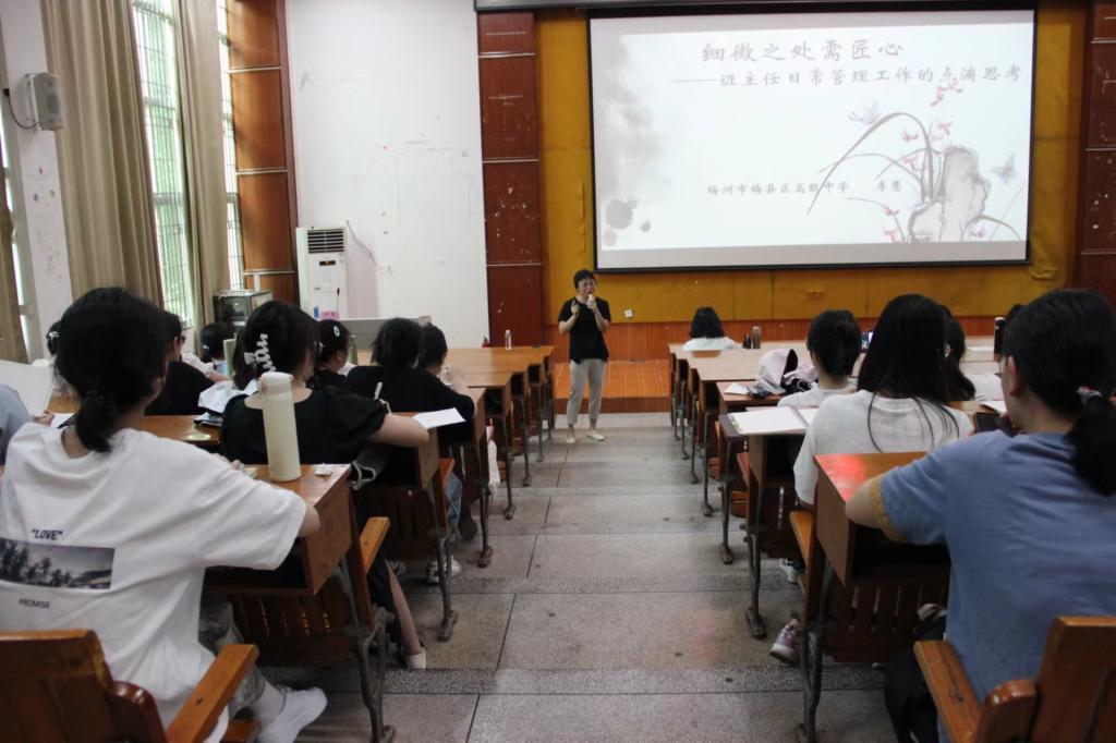 为提升我院师范生的班级管理能力,扎实推进师范生教育实习工作的开展,9月19日下午,梅州市优秀班主任李慧老师应邀在田师100开展以“细微之处需匠心——班主任日常管理工作的点滴思考”为主题的讲座。讲座由侯小英副院长主持,我院两百多位学子聆听了此次讲座。