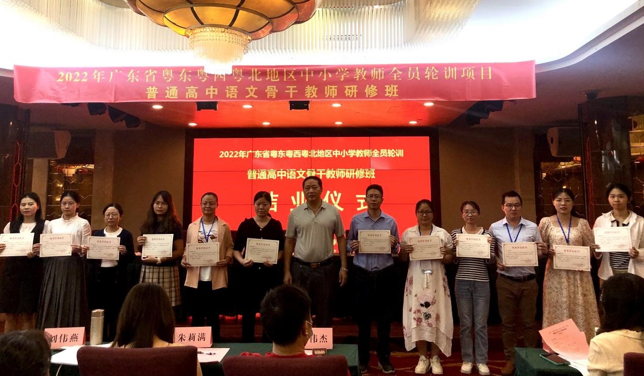 10月21日上午,2022年广东省粤东粤西粤北地区中小学教师全员轮训项目——普通高中语文骨干教师研修班结业仪式在梅州市皇家名典酒店会议厅举行,两个阶段为期十二天的培训工作圆满落幕。