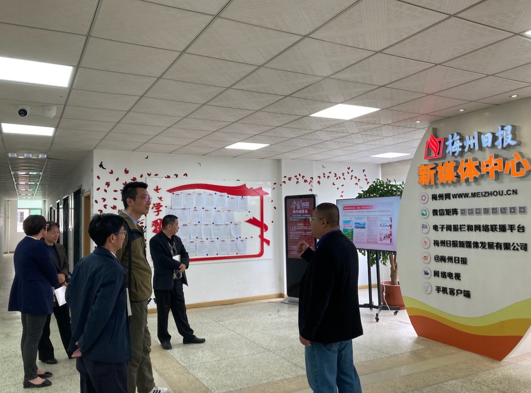 随后,在报社相关部门负责人的带领下,文学院一行参观了梅州日报社全媒体中央控制室、演播中心、教科文卫部等部门,增进了对梅州日报社的了解和认识。