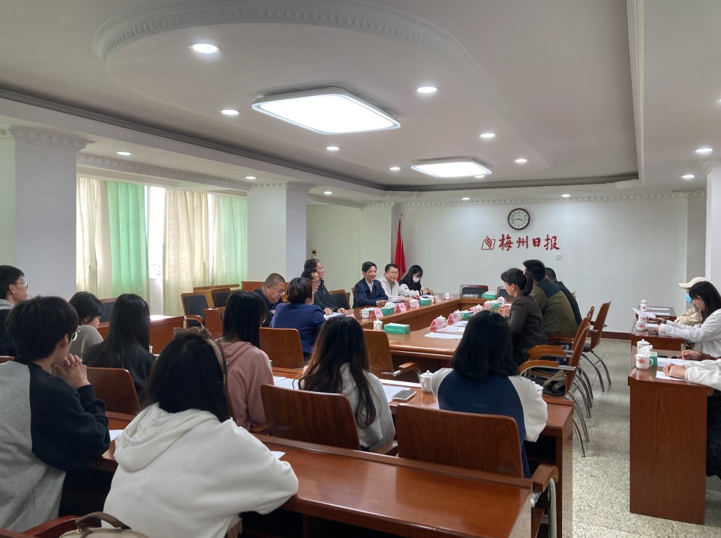 2023年3月2日下午,我院院长刘显、副院长石朝辉、新闻学专业负责人李俊、新闻学专业老师张美婷组织2019级新闻学专业的部分学生前往梅州日报社开展新闻专业实习交流活动。梅州日报社党委书记、社长赖志侃,党委副书记、副总编辑张柏明,编委、记者部主任李锦让,民生部主任宋文辉、新媒体部主任王磊、采编办负责人张小媚、教科文卫部编辑廖玉芳等负责人参加了此次座谈会。
