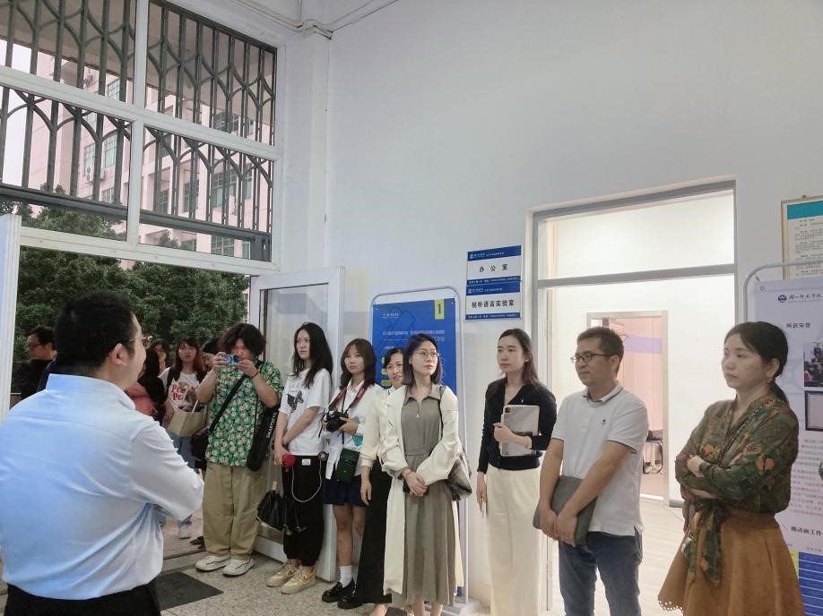随后,我院教师一行参观了韩山师范学院的高清数字演播厅、新闻传播实验室和创客基地,工作人员对实验室的功能和管理进行了详细介绍,使参观的教师对网络与新媒体专业实训的课程内容有了进一步的了解。