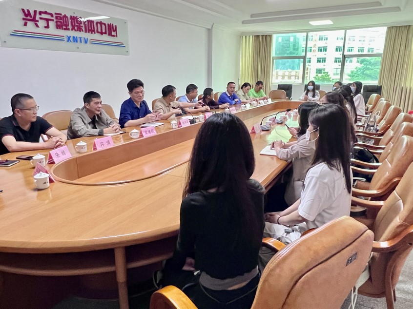 座谈会上,陈云介绍了兴宁市融媒体中心的发展和建设情况。他指出,目前兴宁市融媒体中心正在从相“加”阶段迈向相“融”阶段,将与各方积极合作,实现双赢。他表示,将与我院深度合作,不但是建立实习就业基地,为大学生提供实习就业平台,同时,通过“引进来走出去”的方式,加强校企双方师资力量的交流。