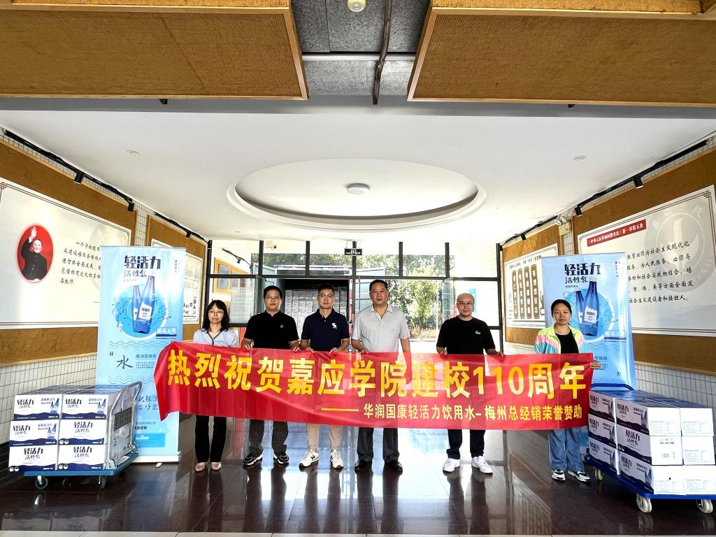 饮水思源,常怀母校之恩。此次赞助源于2008届中文系一位学子,得知学校建校110周年,牵线联系到华润国康轻活力饮用水—梅州总经销负责人刘民信先生,刘民信先生欣然答应为学院赞助260箱350ml、70箱5L,价值2万元的轻活力牌活性氢包装饮用水。