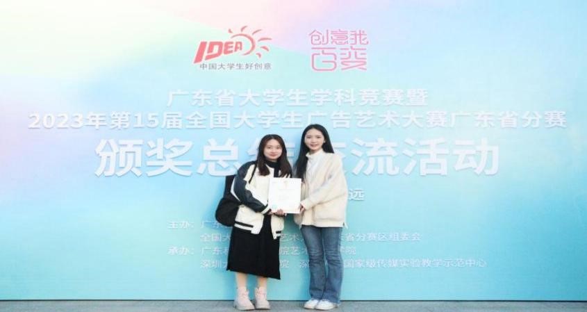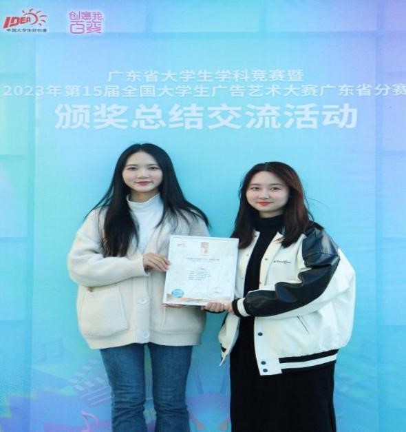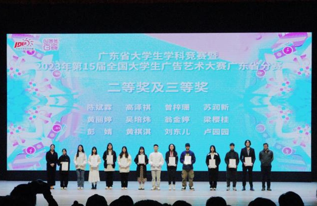 2023年11月17日,第15届全国大学生广告艺术大赛广东省分赛(以下简称大广赛广东省分赛)颁奖总结交流活动在广东科贸职业学院清远校区隆重举行,全省近60所高校500多名师生积极参与,我院老师张美婷,学生刘东儿、郭一锦前往清远参加了此次颁奖活动。
