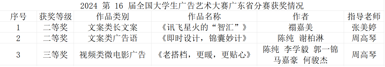 2024第16届全国大学生广告艺术大赛广东赛区获奖情况