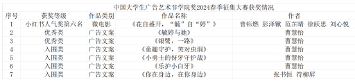 中国大学生广告艺术节学院奖2024春季征集大赛获奖情况