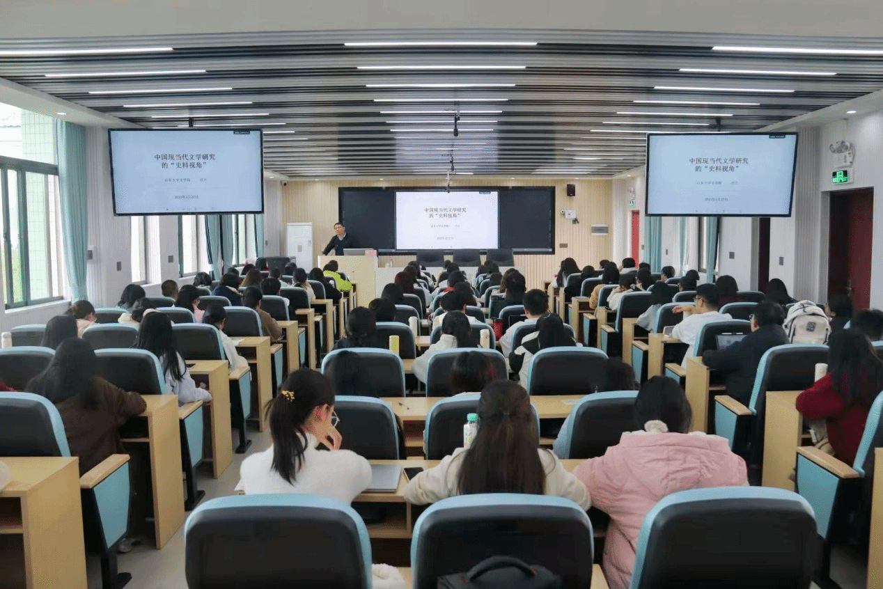 2月27日下午,山东大学文学院教授、博士生导师宫立应邀在百年纪念大楼515室开展以“中国现当代文学研究的‘史料视角’”为主题的学术讲座。我院2201班、2202班全体同学参与此次讲座。讲座由我院副院长石朝辉主持。
