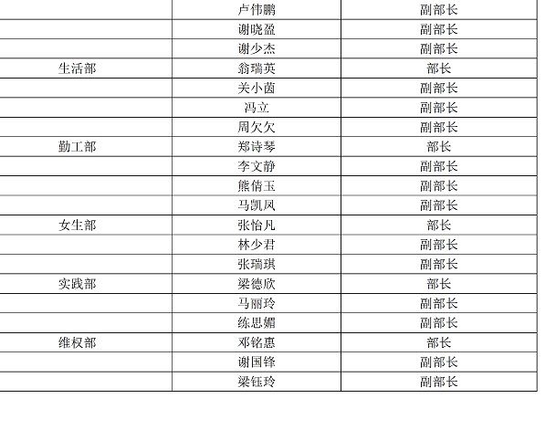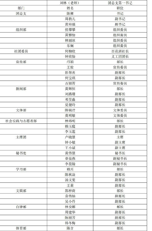 文学院第四届团学干部名单