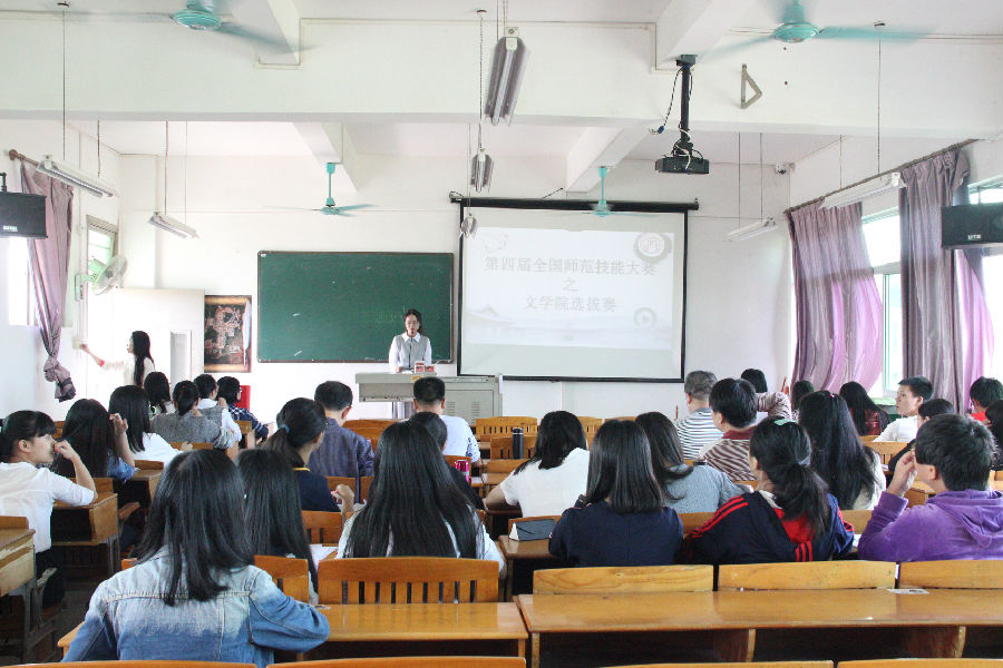 为迎接第四届“全国师范院校师范生教学技能竞赛”,提高师范生的教学技能素质和综合素养,文学院于11月6日在田师603举行了全国师范技能大赛选拔赛。比赛邀请了该院副院长沈露儒、陈红旗以及相关专业指导老师担任评委。