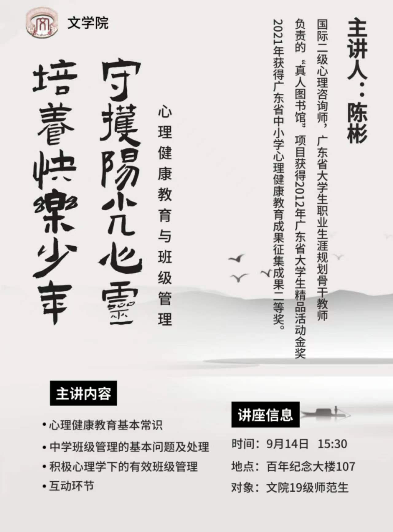 2022年9月14日讲座预告