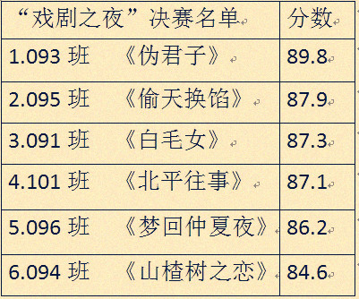 戏剧之夜初赛结果
