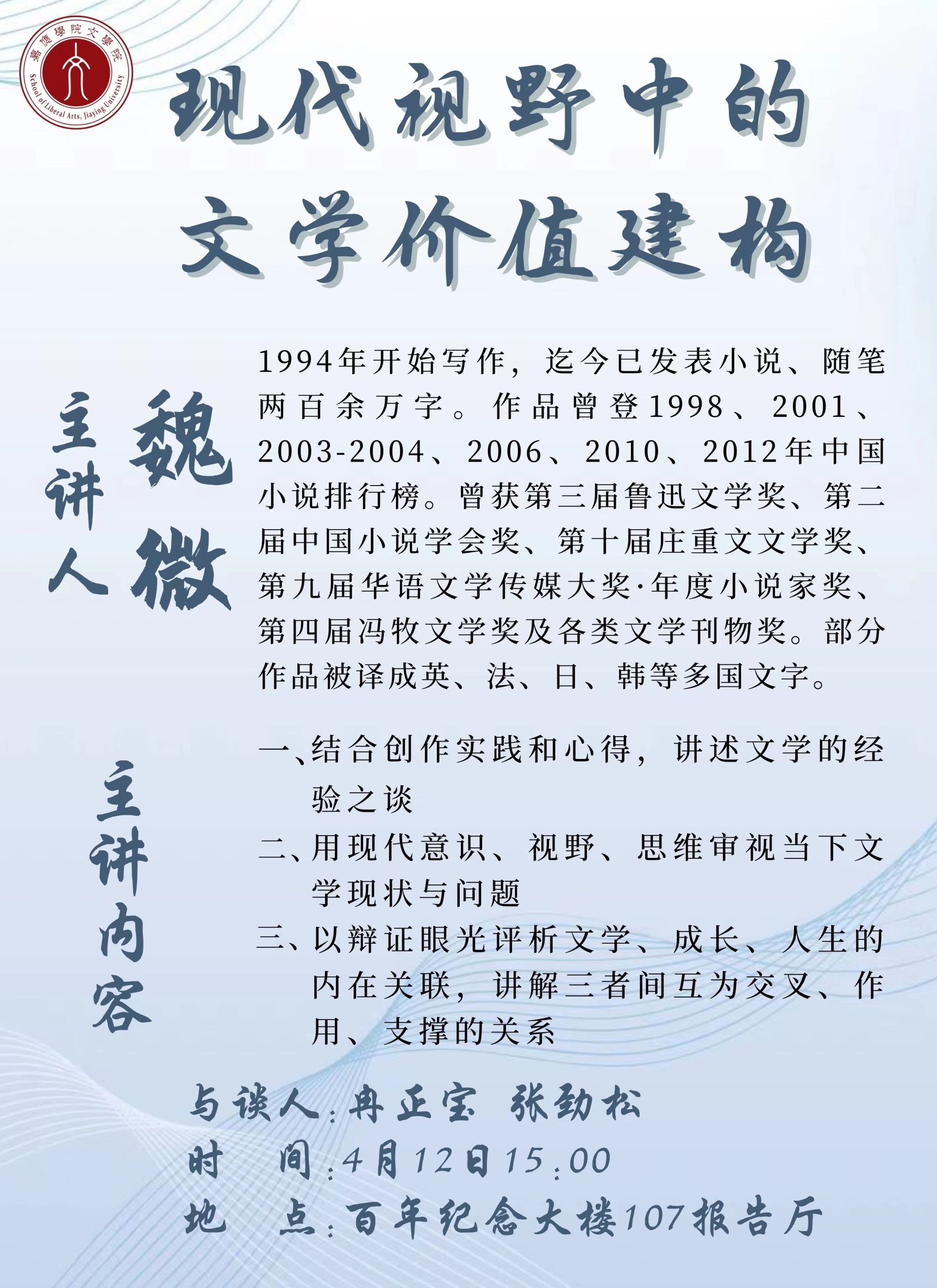 2024年4月12日讲座预告